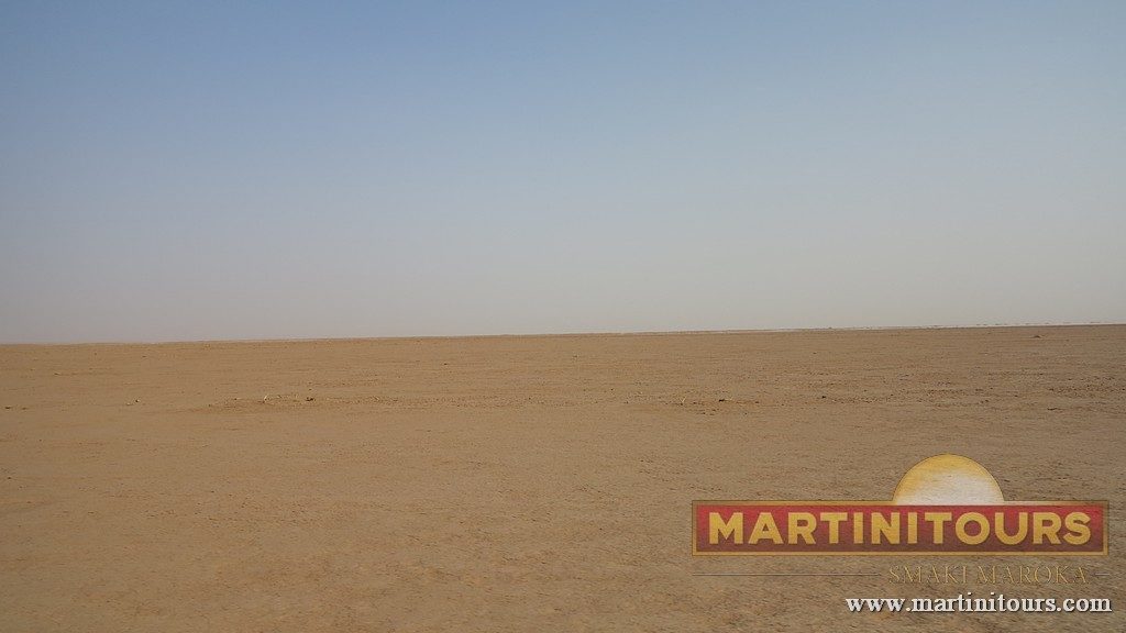Jadąc z miasteczka Foum Zguid droga na wydmy prowadzi przez wyschnięte jezioro Iriki.