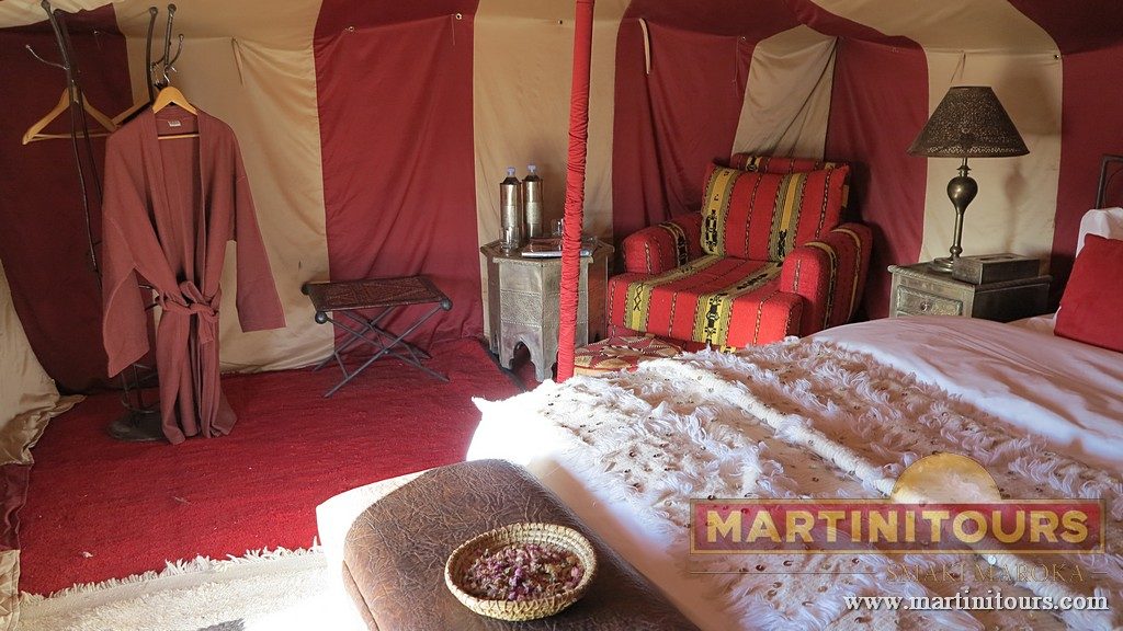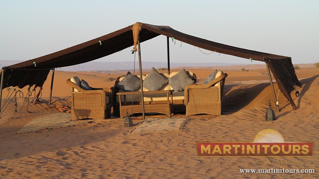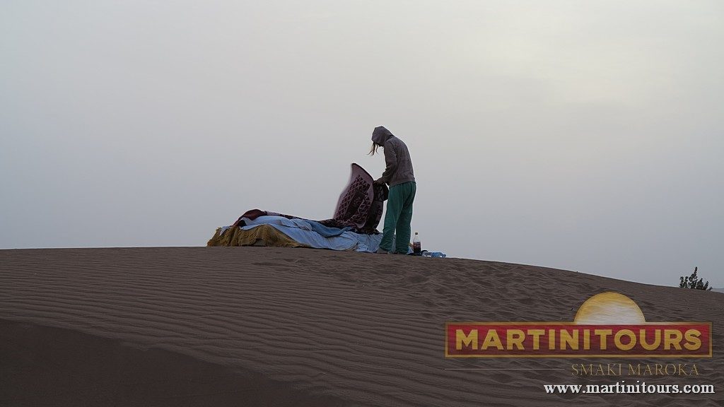 Na wydmach dobrze jest spędzić noc. Możesz to zrobić w jednym z wielu obozowisk, gdzie śpisz w namiotach z wełny wielbłądziej, otulony ciszą … lub muzyką nomadów.