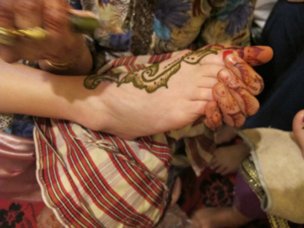 Malowanie ciała henna w Maroku to ważny rytuał w codziennym życiu ale też rytuał związany ze wszystkimi uroczystościami jak: ślub, obrzezanie, święta religijne, „mussemy” i inne znaczące wydarzenia. Ciało malują i kobiety i mężczyźni i dzieci . Tradycyjna „henna berberyjska ” to nią są kwiatowe lub roślinne elementy malowane głównie przez młode dziewczyny a takie „placki” wewnątrz dłoni na opuszkach palców i prawie całe stopy są „zanurzone” w hennie. Taka „dekoracja” ma praktyczne znaczenie, chroni skórę przez silnym słońcem, przed wysuszeniem , pękaniem…
